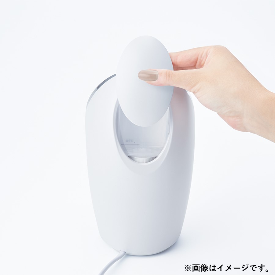 ●肌の奥(角質層)までたっぷり保湿。スパイラル状に噴霧する約45℃ (ノズルから約25cm 付近) の心地良いナノミストが、顔全体を包み込みながら肌にたっぷりうるおいを与えます。スチームを浴びた肌は水分量218%UP。洗顔後のスキンケアの前に使用すれば、普段の基礎化粧品がより浸透しやすい肌環境に整えます。