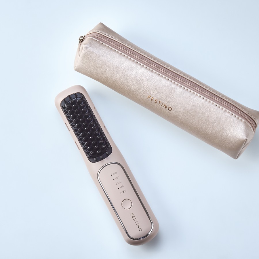 <フェスティノ>充電式スタイリングヒーターブラシ サンドベージュ