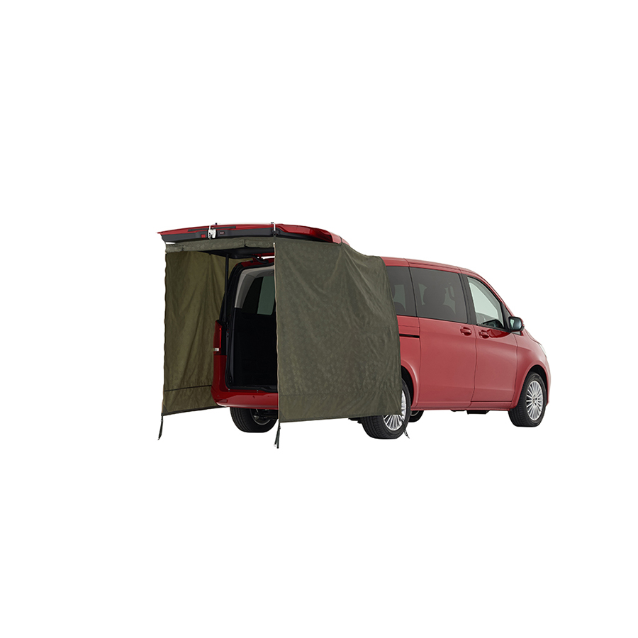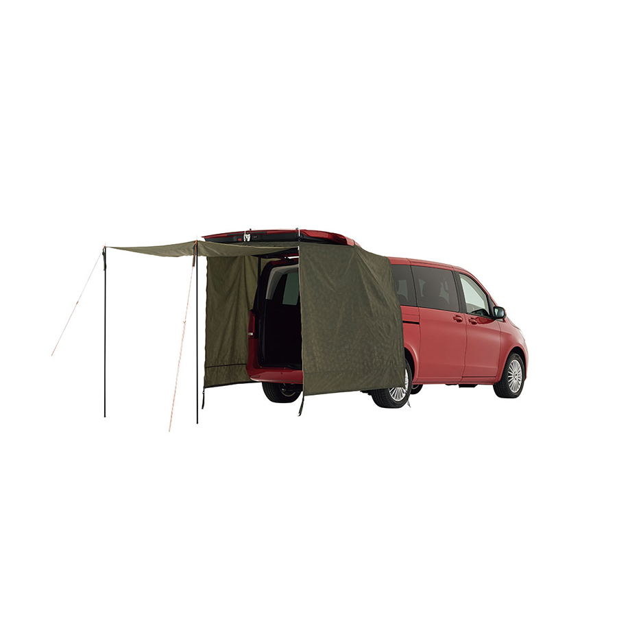 - 特徴多様なミニバンに対応するミニバンリビングは、車体後方に取り付けることで簡単にプライベートスペースを確保できる。設置方法は、吸盤を取り付けて裾をペグで固定するだけ。海水浴時の着替えなどに最適。持ち運びに便利な収納バッグ付き。