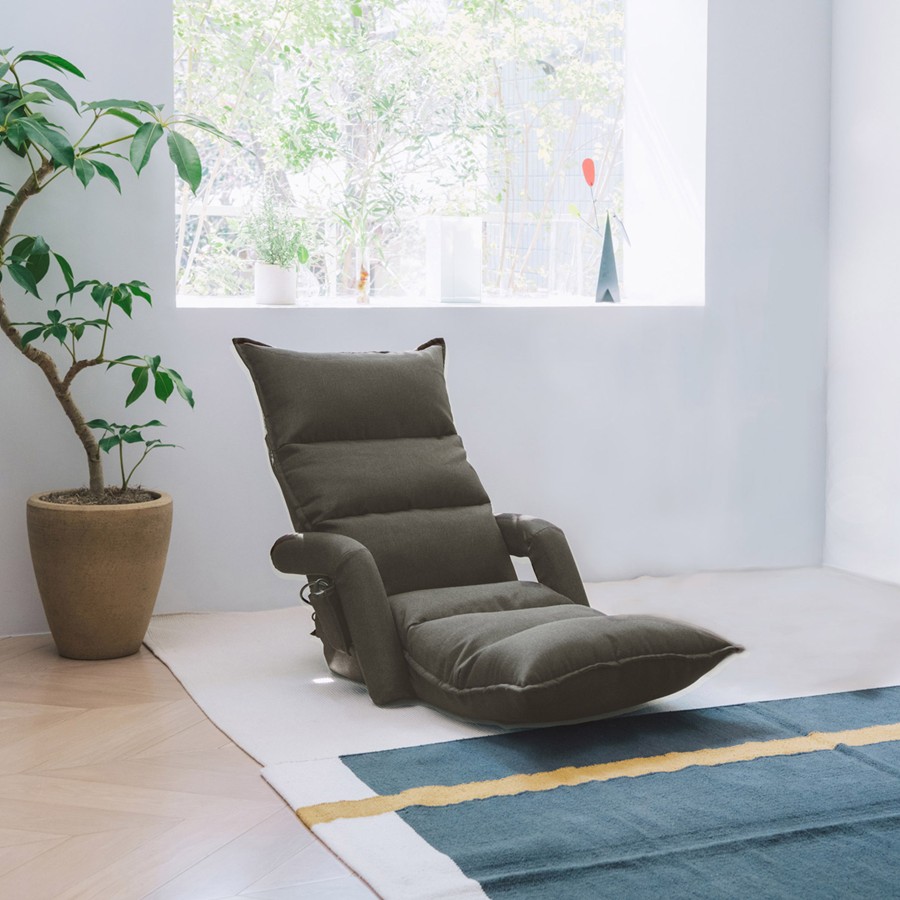 - サイズ約高さ72×幅52×奥行76cm(リクライニングしていない時)、約高さ18×幅52×奥行134cm(リクライニングしている時)、座面高さ約15cm(座中央)、質量約9.1kg、コード約1.85m、付属品:ACアダプター