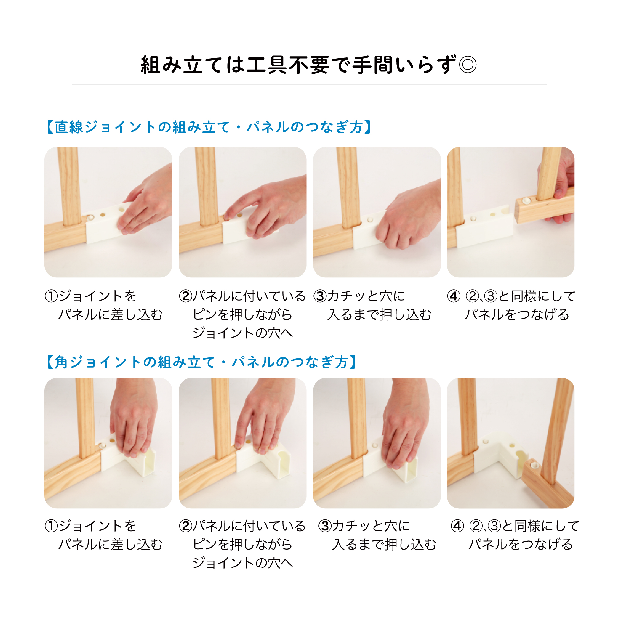 - セット内容木製パネル×7、木製パネル(扉付)×1、直線ジョイント×8、角ジョイント×12、すべり止めステッカー×20、取扱説明書兼保証書