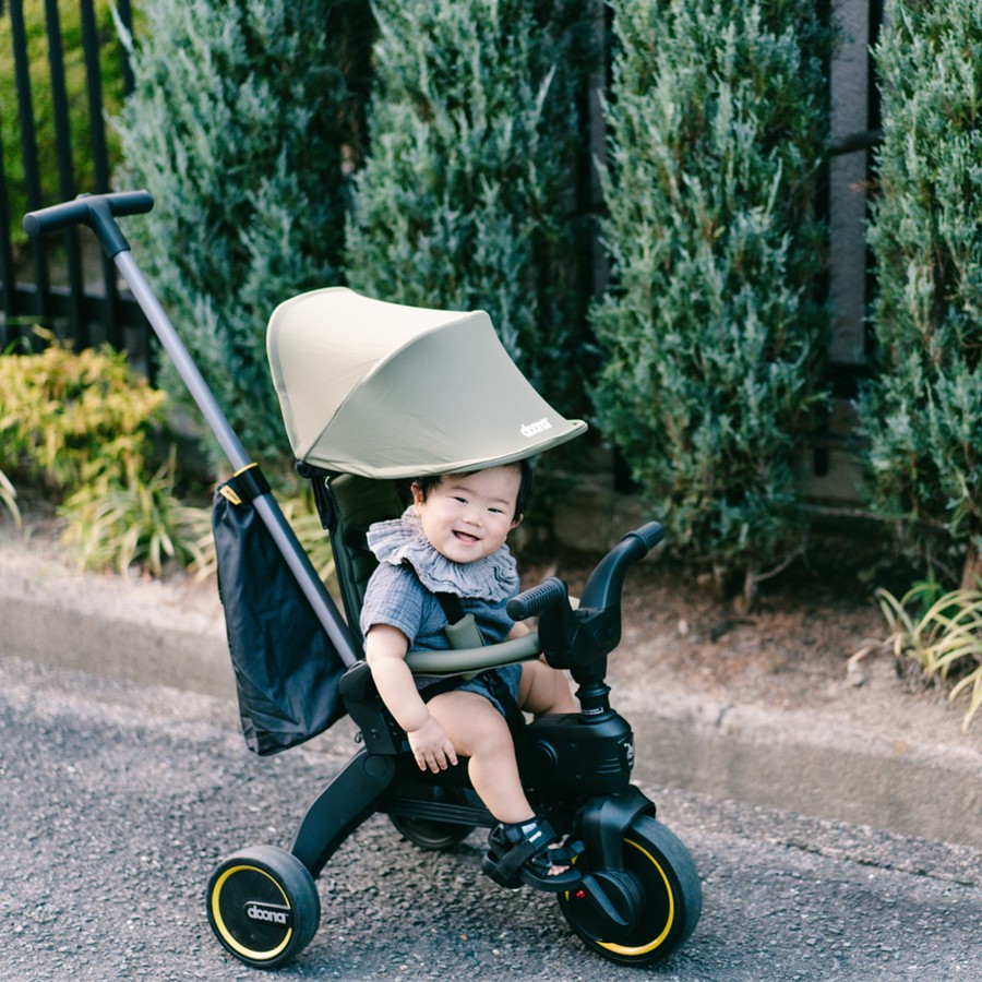 生後10か月のまだしっかり歩かないうちは、ベビーカーとして使用します。パーツをどんどん外して、3歳までに自分で三輪車を漕げるように。自我が目覚めた、好奇心旺盛なお子さんには、ベビーカーより、自分で操作している気持ちが満たされる、リキトライクがぴったり。
