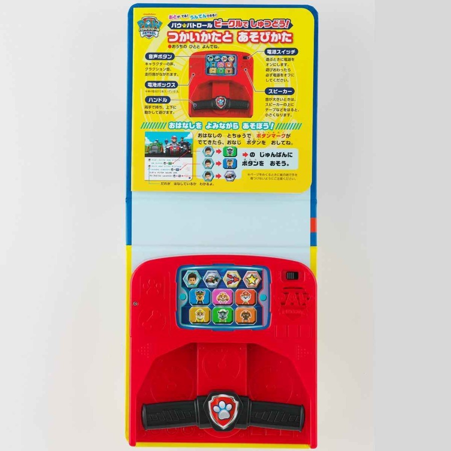 - 特徴「パウ・パトロール」から音が出る&ハンドル付きの絵本が登場!音声は全部で40種類以上。実際のキャラクターの声が流れます。お話を読みながら、ケントになりきって指令を出し、パウパトとトラブルを解決しよう!