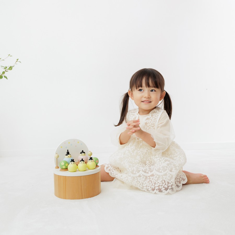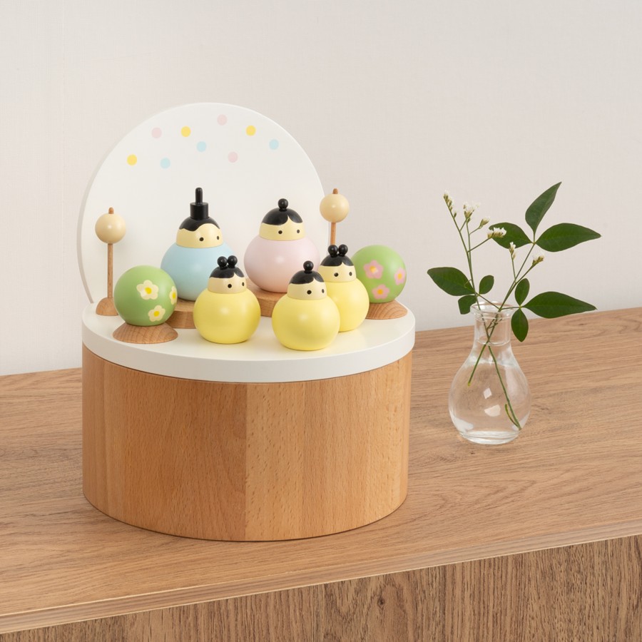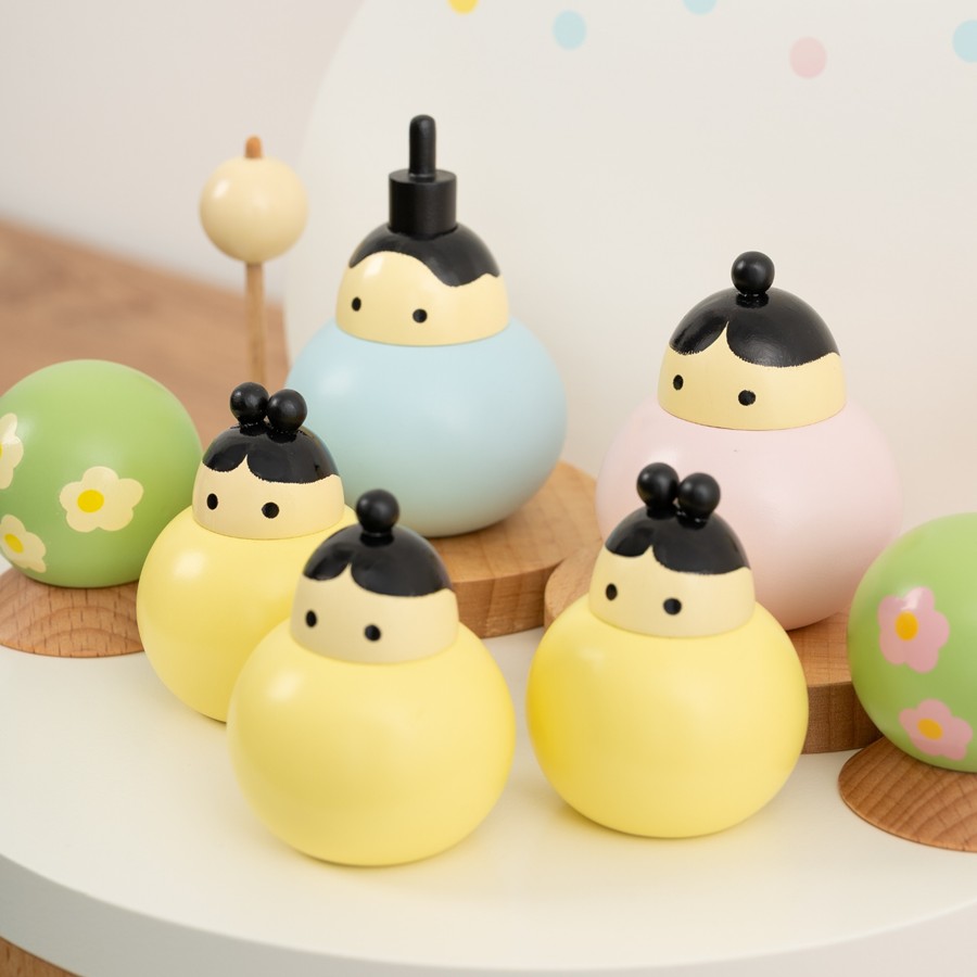 ころんとした丸いフォルムが愛らしい、手のひらサイズの木製雛人形。木のぬくもりを感じながら、ふれて、遊んで、飾って楽しめる。そんな、新しいひな祭りの楽しみ方をかたちにしました。丸いフォルムが可愛くて、ふれるたびに笑顔が生まれます。あたたかな時間の中で、お子さまと一緒に楽しいひとときをお過ごしください。