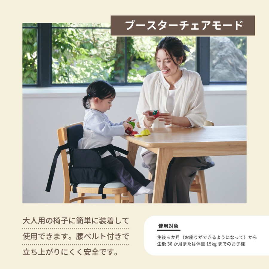 ・大人用の椅子に取り付けてブースターチェアとしてお使いいただけます。