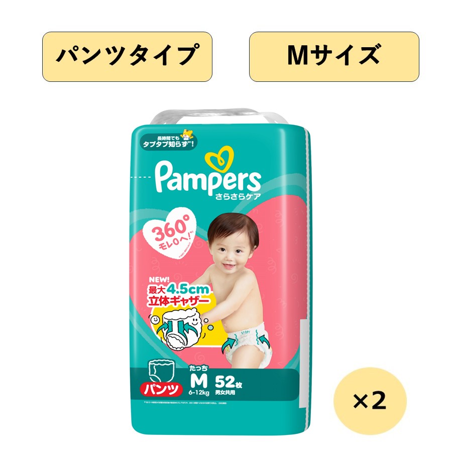 【パンツタイプ】<パンパース>さらさらケア Mたっち 52枚 2パックセット